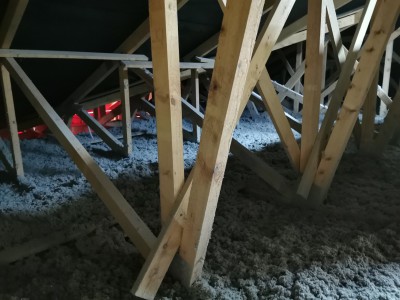 - Cieľ: zateplenie väzníkového krovu, 148 m2