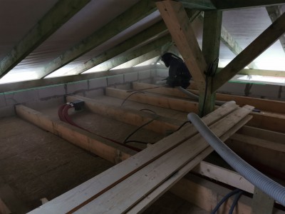 V novostavbe rodinného domu v Žiline sme aplikovali fúkanú celulózovú izoláciu Climatizer Plus. Fúkaná izolácia bola aplikovaná s cieľom zatepliť trámový strop novostavby. Fotky z realizácie si môžete pozrieť nižšie.